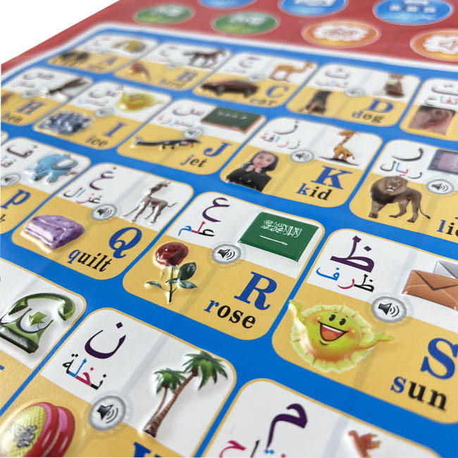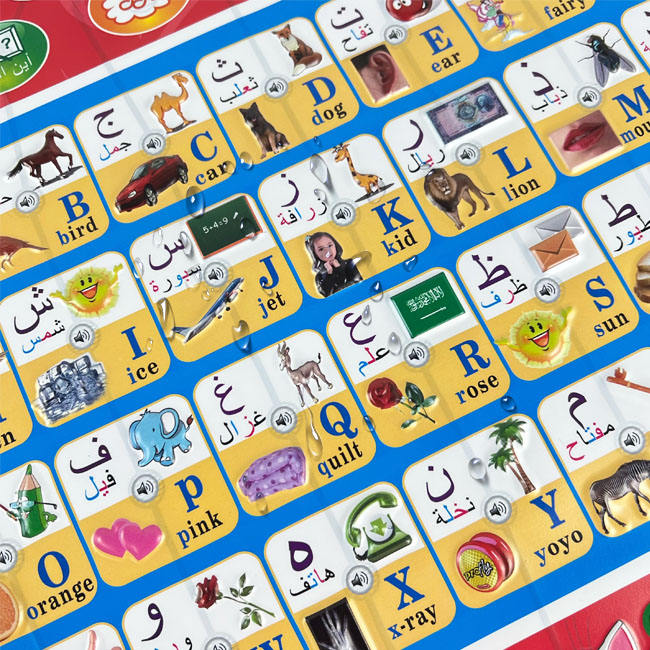 Póster Interactivo Inteligente Educativo para Niños, Alfabeto Inglés-Árabe Bilingüe, Juguete de Aprendizaje, Póster Parlante con Audio