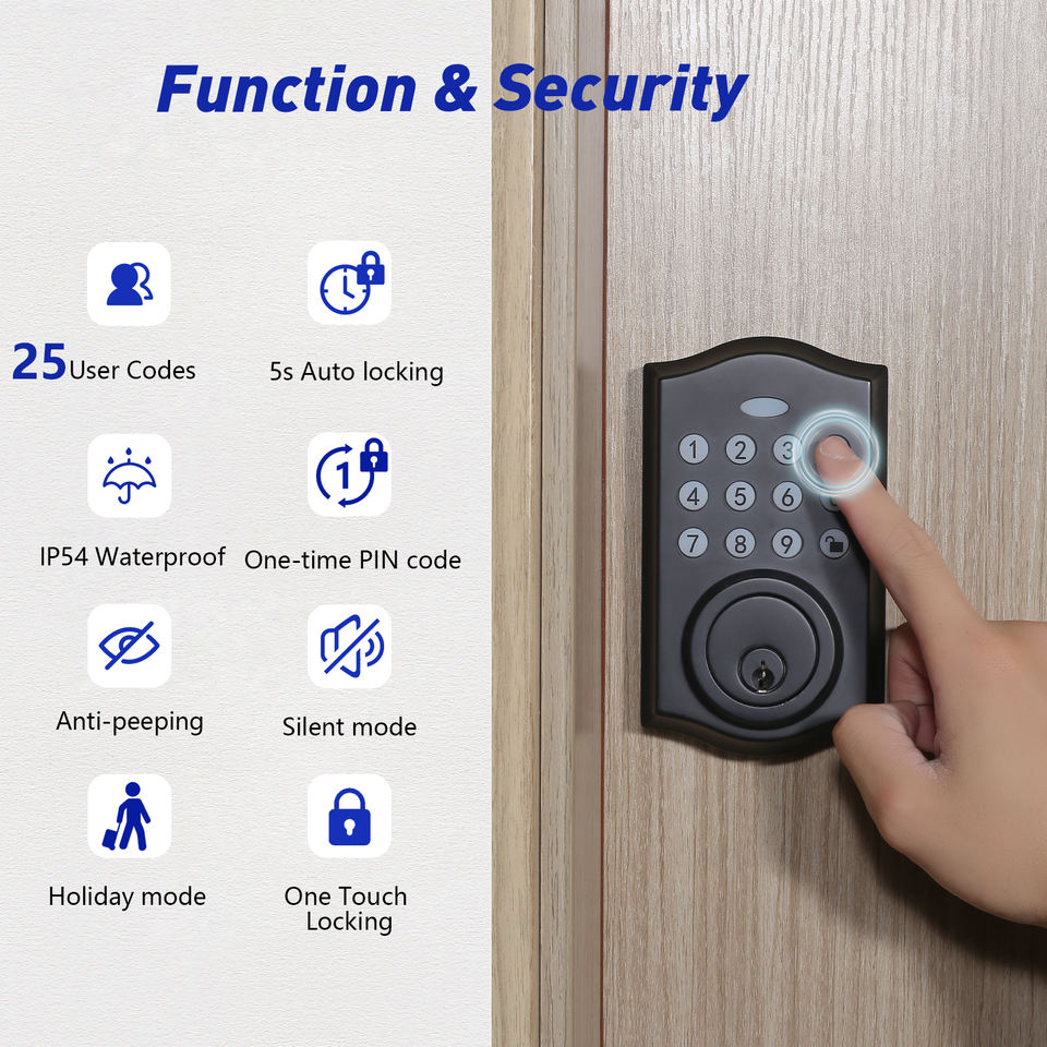 Cerradura inteligente de entrada sin llave para puerta Delantera de madera con cerradura automática y 2 llaves Cerradura de puerta con teclado de fácil instalación