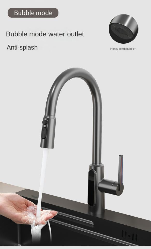 Grifo de Cocina Inteligente con Pantalla Digital de Temperatura, Salida de Agua Fría y Caliente, Diseño Extraíble para una Fácil Limpieza