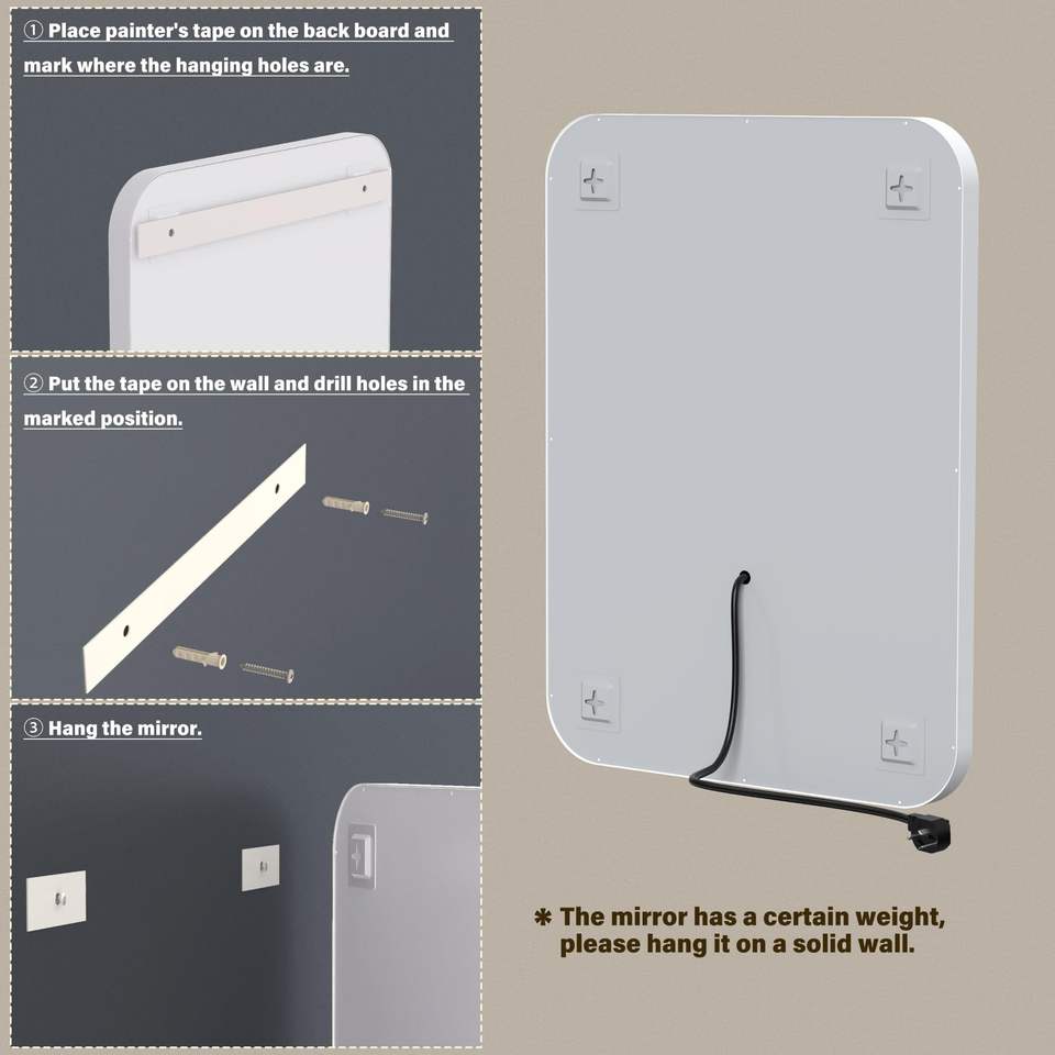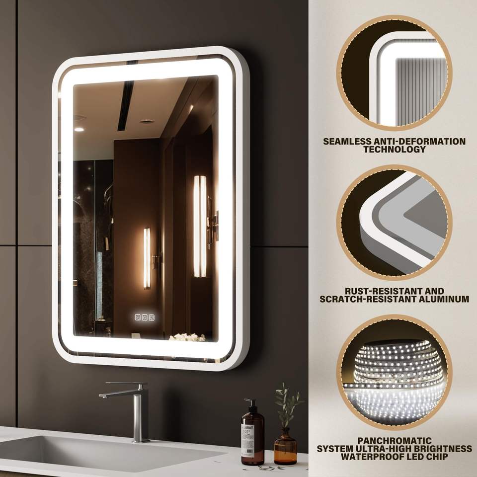 Espejo de Baño LED Inteligente con Luz, 32x24, Espejo de Maquillaje con Marco para Montar en la Pared, Regulable, 3 Temperaturas de Color [U]