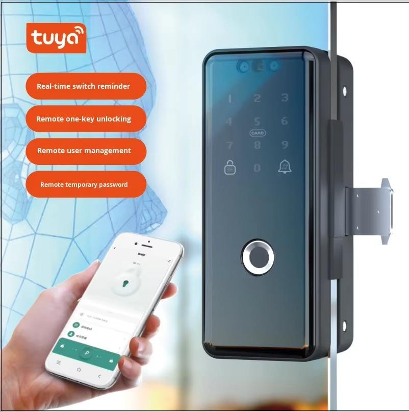Smart Lock 3D WiFi Reconocimiento facial Huella digital Contraseña electrónica Swing Puerta de vidrio sin marco Pantalla OLED para Android Office