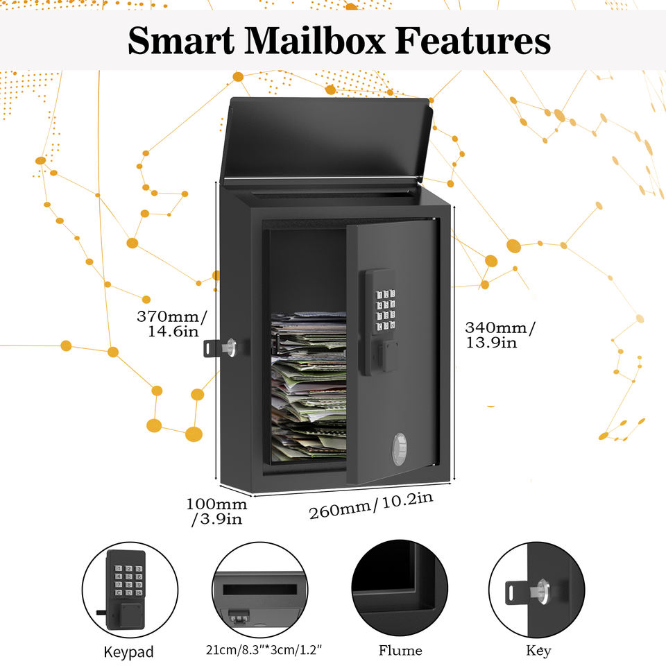Buzón Inteligente con Contraseña Dinámica, Desbloqueo Remoto por Bluetooth, Buzón Inteligente Impermeable para Entrada de Casa