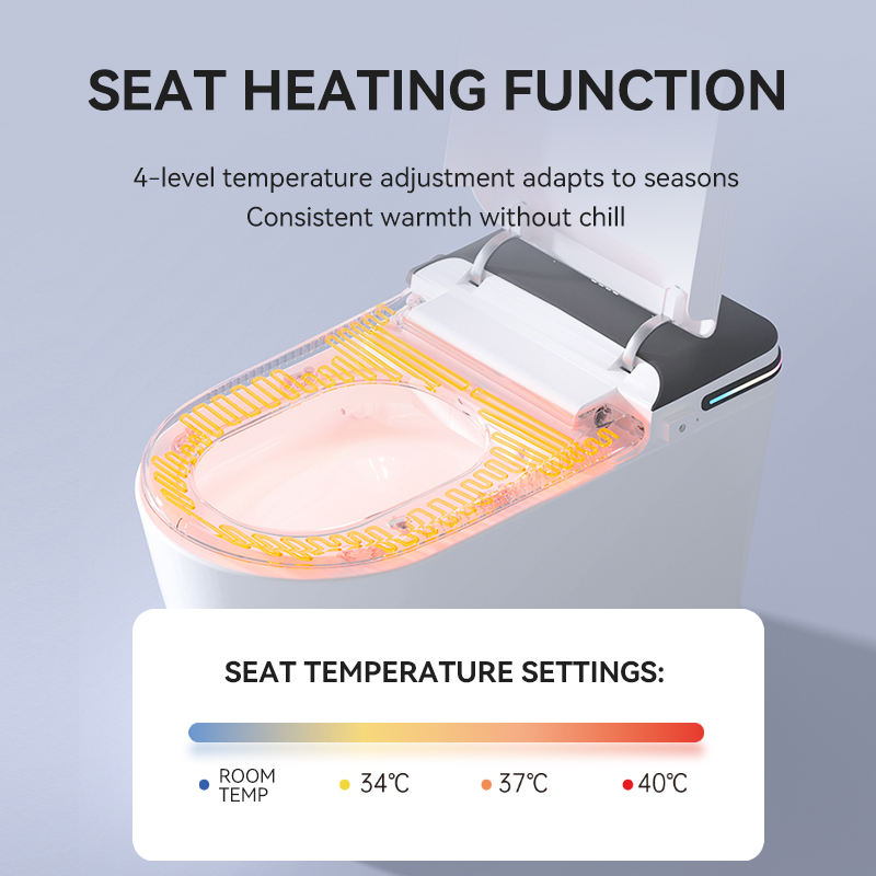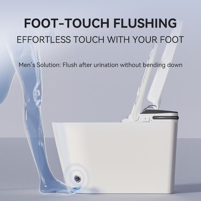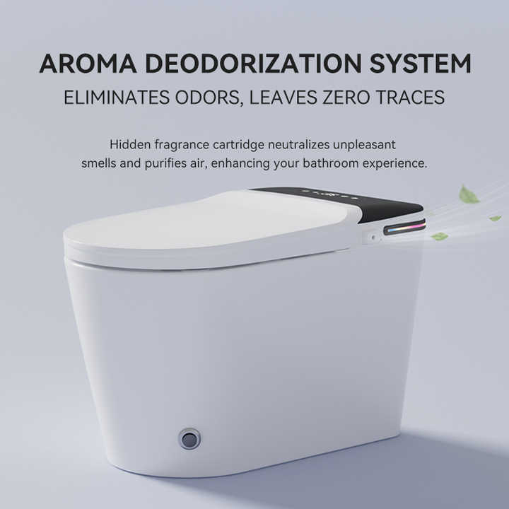 Inodoro Inteligente Moderno de Cerámica Alargado con Control por Voz, Descarga Automática, Secado por Aire, Montaje en Suelo, Drenaje en Forma de S, Control Remoto Incluido