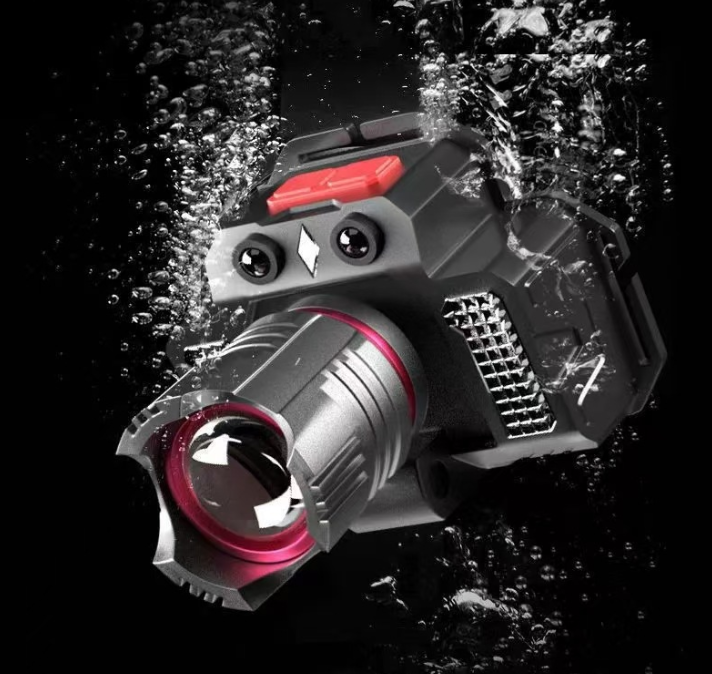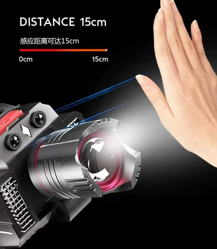 Linterna Frontal Inteligente con Sensor de Movimiento y Luces Auxiliares Dobles, Lámpara Frontal Recargable Ajustable para Ciclismo Nocturno y Senderismo