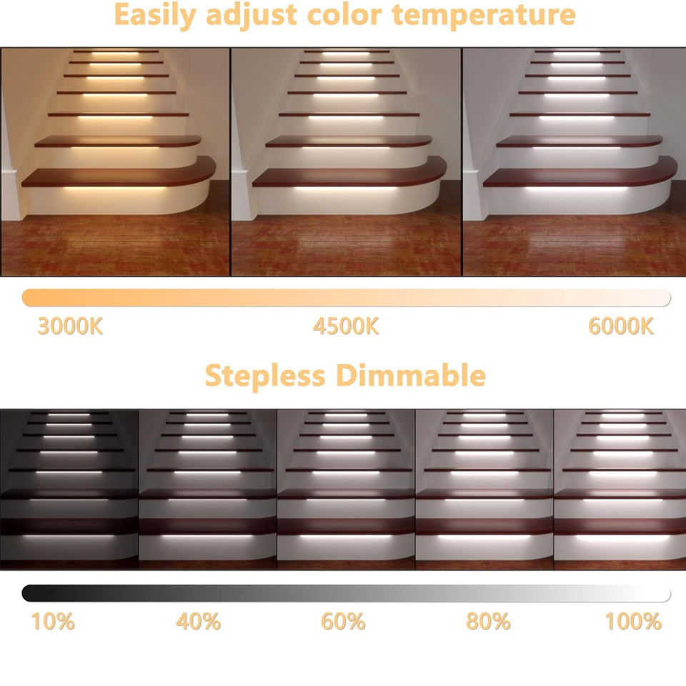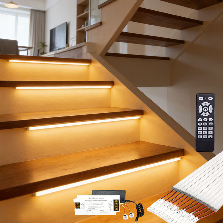 Kit de iluminación de escalón de luz de escalera con Sensor de movimiento inteligente, LED regulable de aluminio de 24V con control remoto para iluminación interior de Villa y hogar