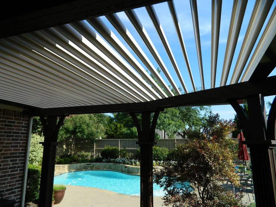 Pérgola bioclimática con techo de lamas de aluminio