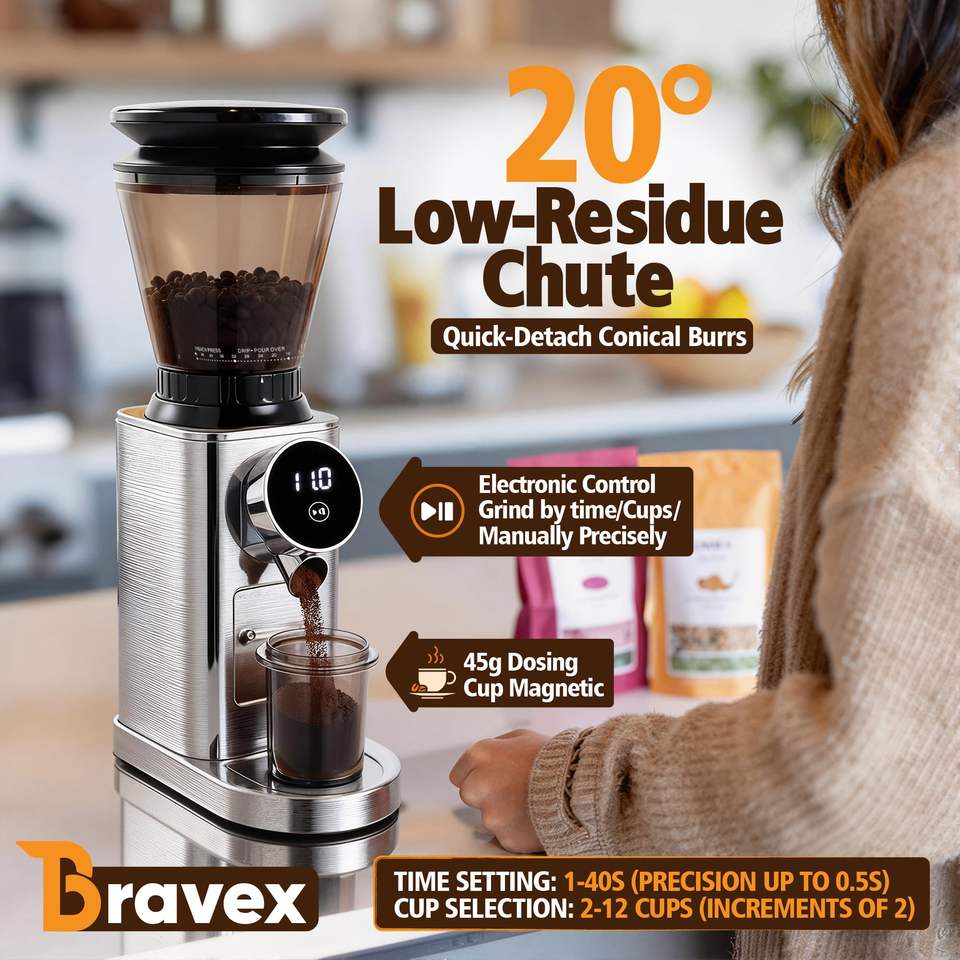 Molinillo de Café y Especias Eléctrico Comercial Portátil Inteligente, Molienda por Peso, para Espresso/Prensa Francesa/Café de Goteo/Café Frío