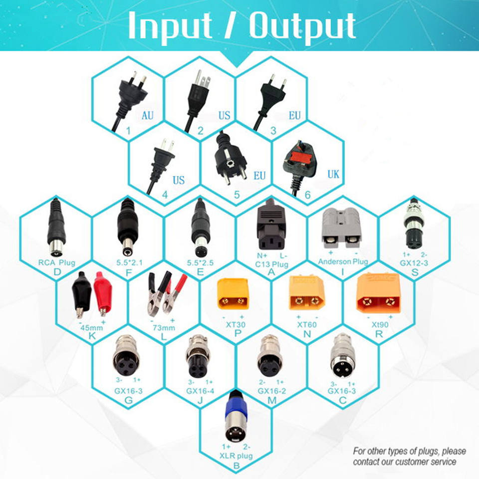 Apto para:Cargador de batería de litio de 72V para bicicleta eléctrica, coche eléctrico, carretilla elevadora eléctrica y aspiradora eléctrica.