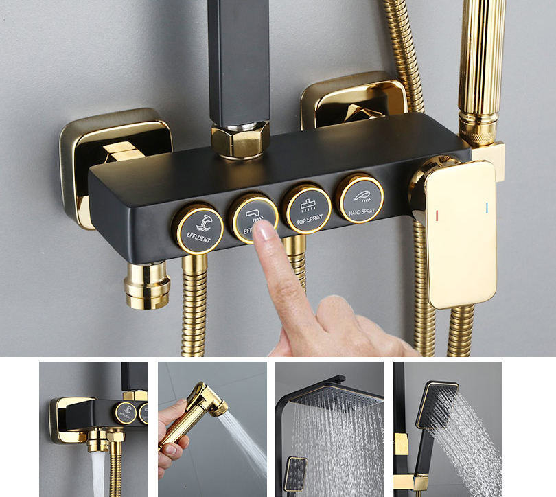 Smart SPA Kit Juego de ducha fría y caliente con grifo de montaje en pared, soporte de suelo multifunción, acabado cepillado