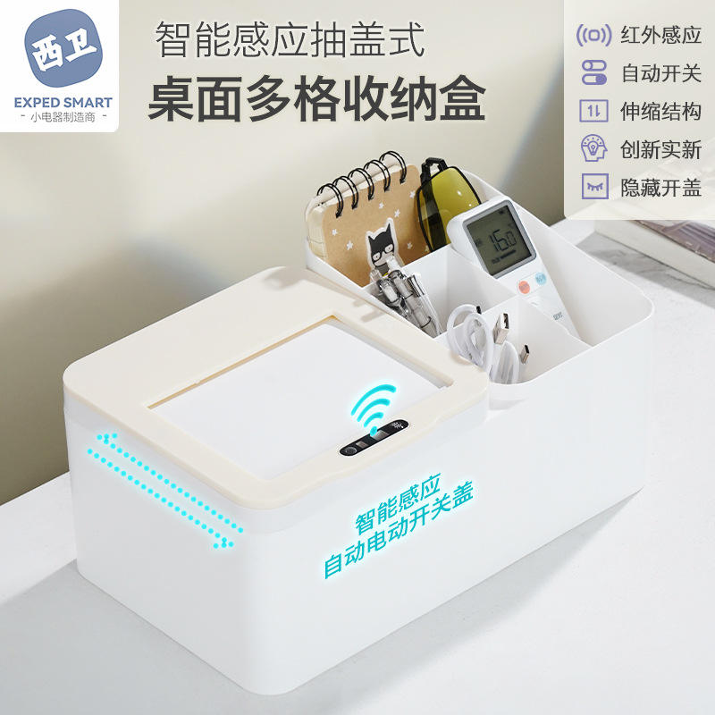Caja de Almacenamiento Eléctrica Inteligente con Sensor, Organizador de Escritorio Rectangular de 6L con Tapa para Joyería, Cuidado de la Piel, Pañuelos y Bocadillos
