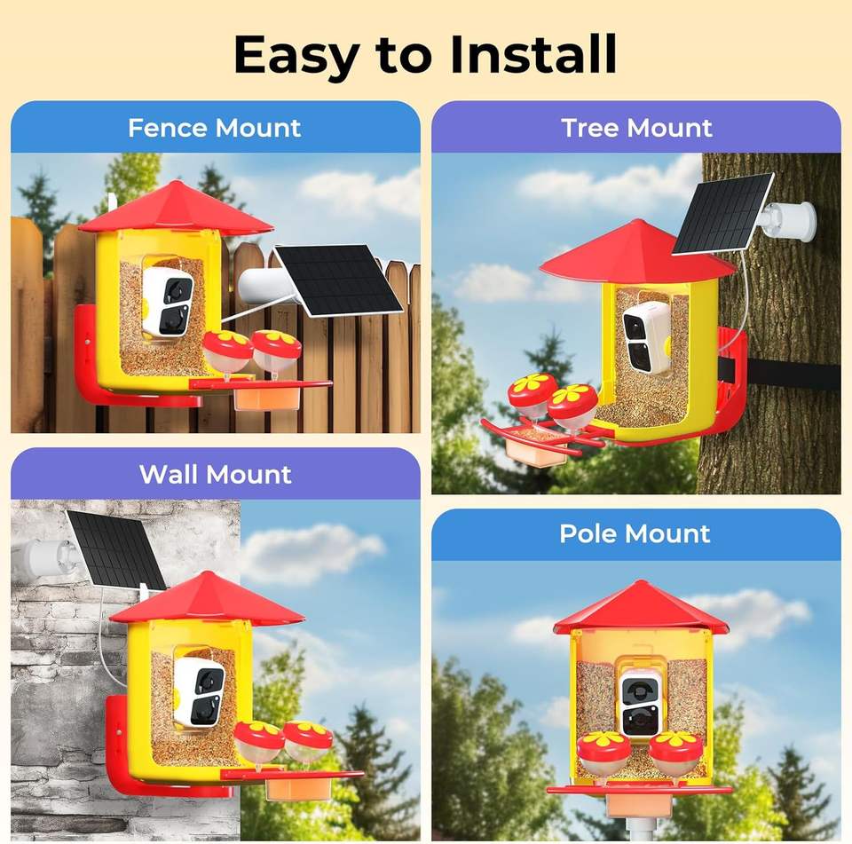 Alimentador inteligente de colibrí con energía solar con cámara ajustable, monitoreo de video HD, conectividad inalámbrica para observación de aves de jardín