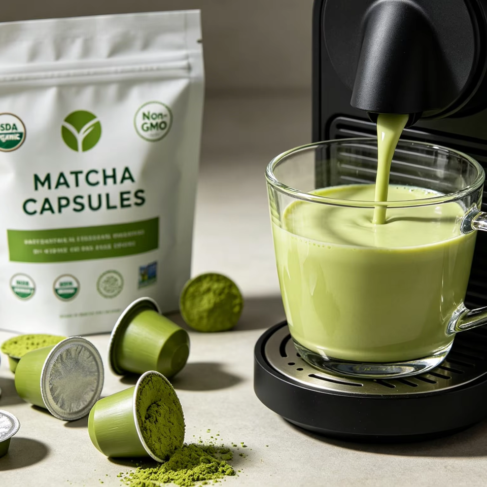 Cápsulas de Matcha Smart Sourcing para Máquinas de Café | Modo IA Listo para Usar – Sabores y Empaques Personalizados para Nespresso/K-Cup – Tecnología Accio