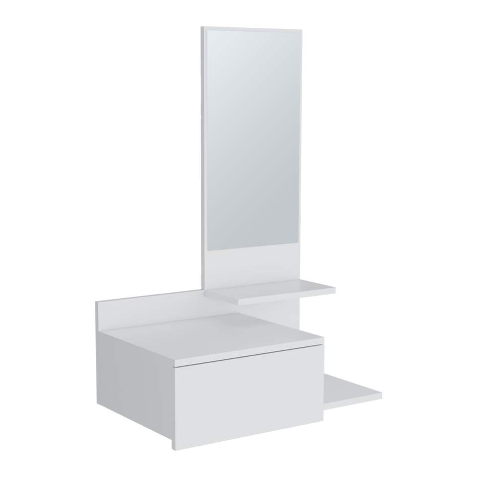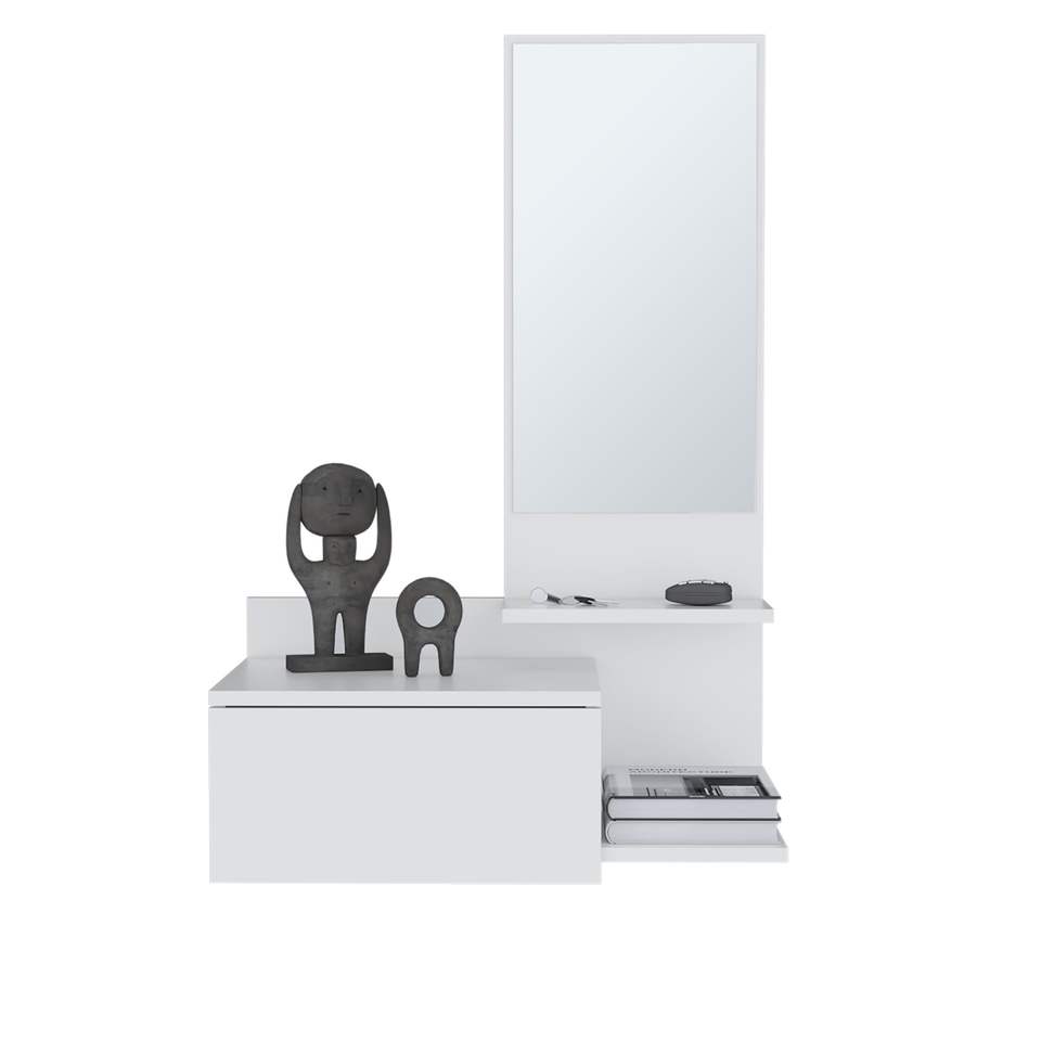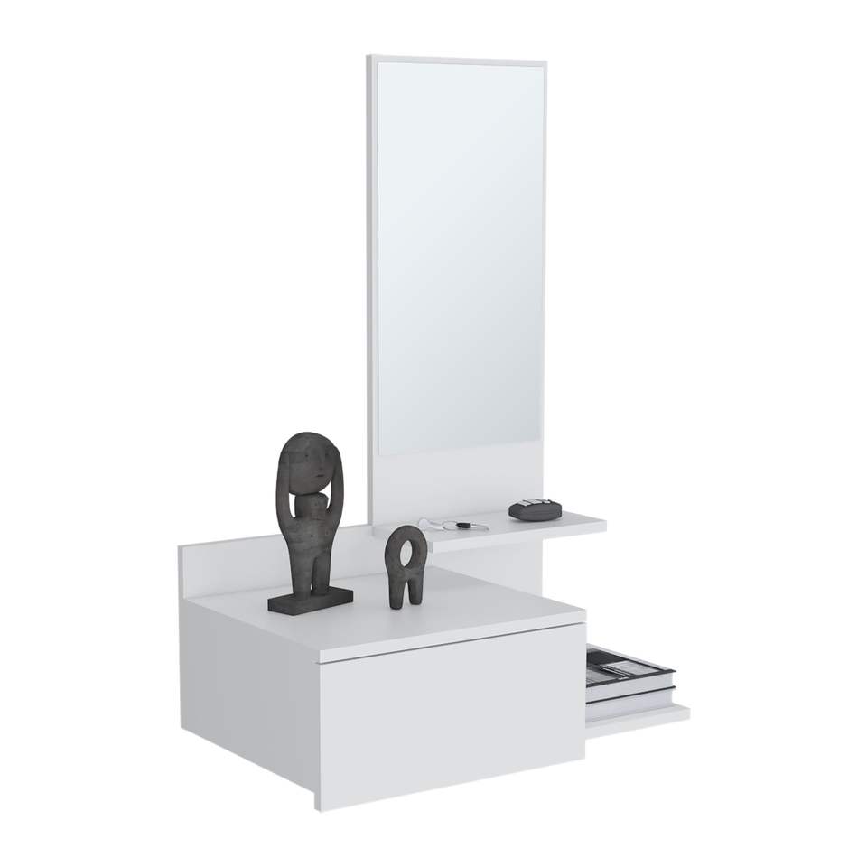 Almacenamiento y Organización Inteligentes, Mueble Flotante para Pasillo de 36.2 Pulgadas de Alto, 1 Cajón, 3 Estantes, 1 Espejo, Blanco
