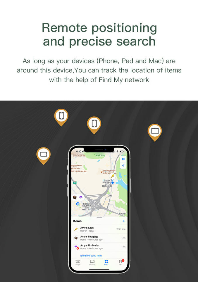 Etiqueta inteligente IP67 impermeable batería de larga duración MFi ITag Key Finder localizador billetera equipaje Mini rastreador GPS para IOS Find My