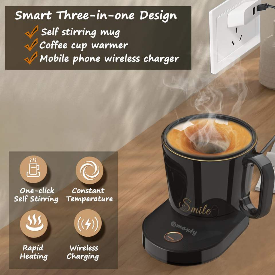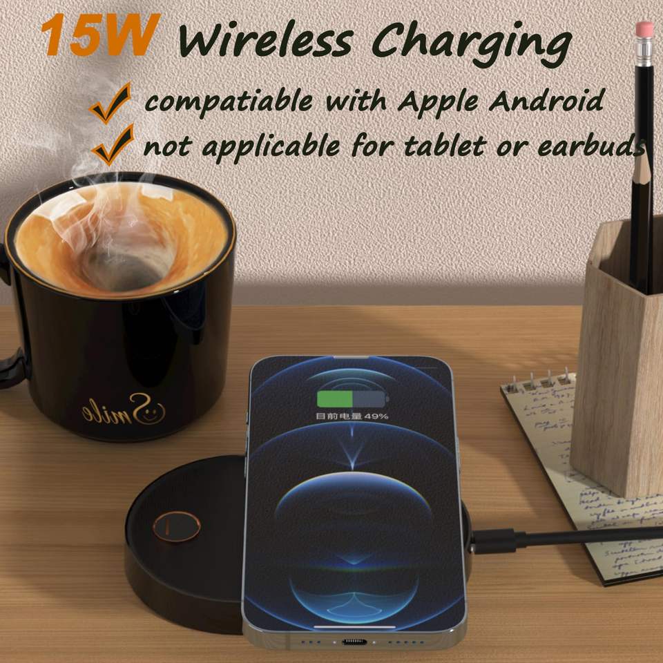 Taza Inteligente con Control de Temperatura y Agitación Automática, Cargador Inalámbrico de 20W, Protección OVP de 9V/2A, Ecológica, Ideal para Oficina y Hogar