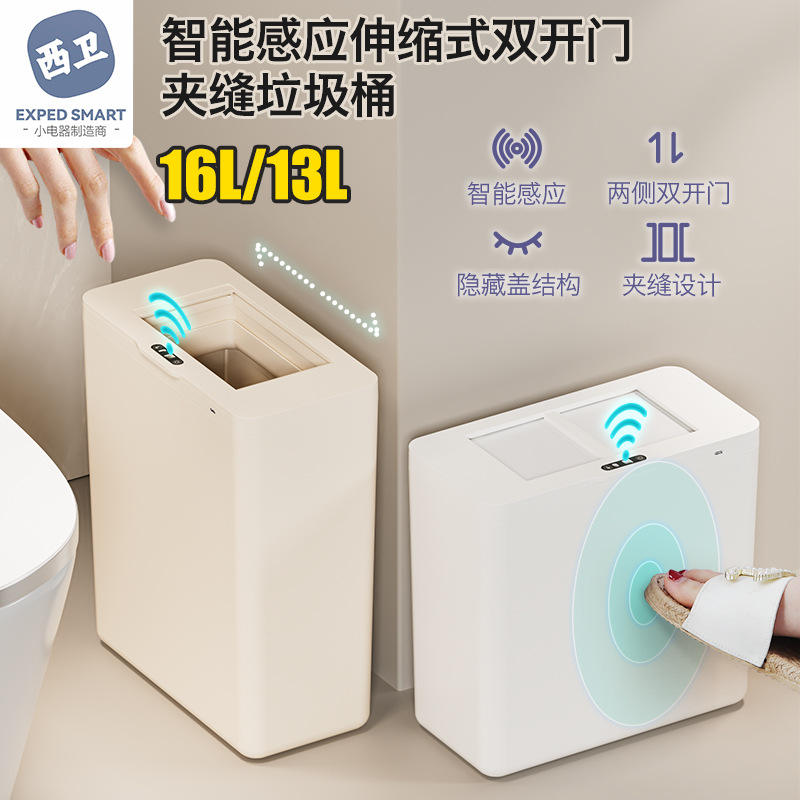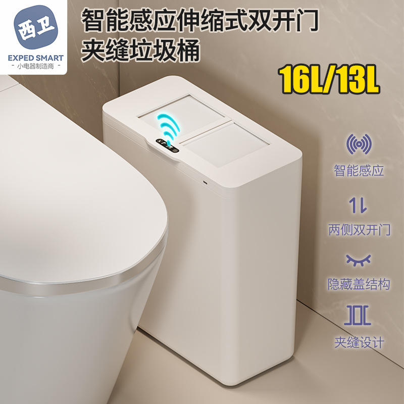 Cubo de basura inteligente rectangular de 13-17L con detección de movimiento inductiva y batería incorporada para sala de estar, dormitorio, oficina, hotel