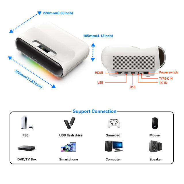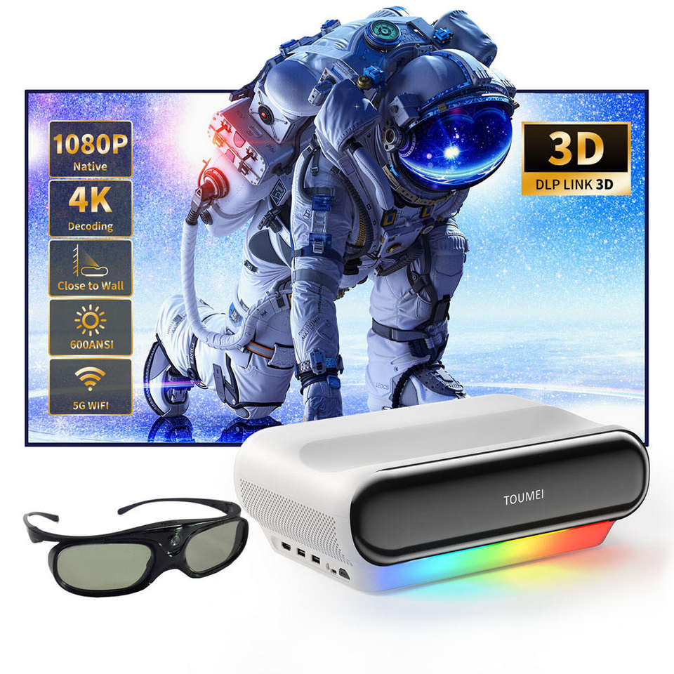 Proyector Inteligente de Tiro Ultra Corto, 1080P, Compatible con 4K, DLP, WiFi, Enfoque Automático, MEMC, Android, para Dormitorio