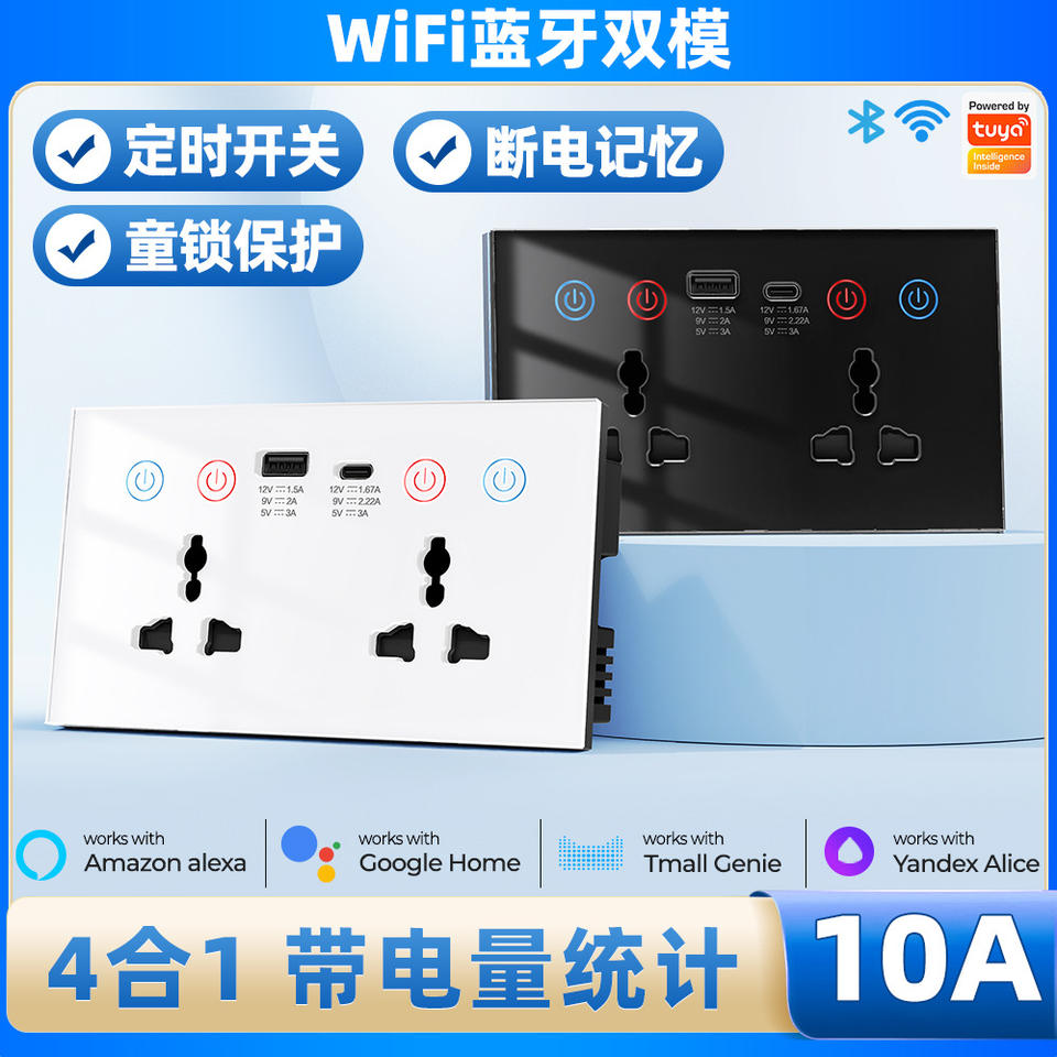 Enchufe de Pared Universal Inteligente con Control Wi-Fi, Doble Tomacorriente, Temporizador, Protección Infantil, Retardante de Llama V0