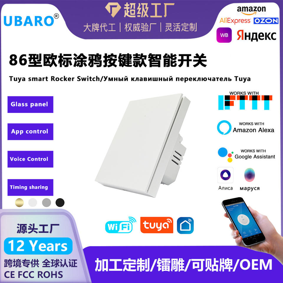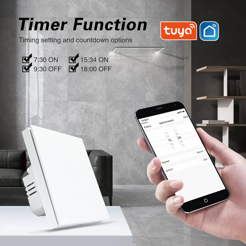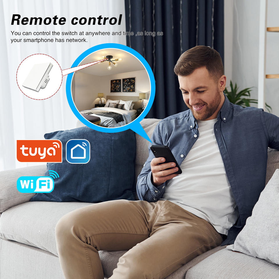 Interruptor de Pared Inteligente Estándar 86 de un Solo Polo con Control por Aplicación y Voz para Automatización del Hogar, Panel de Plástico Blanco