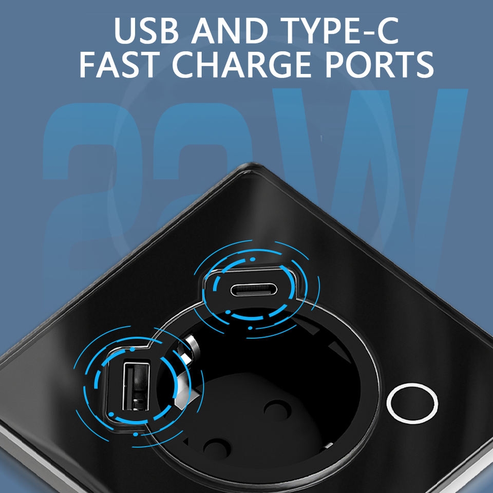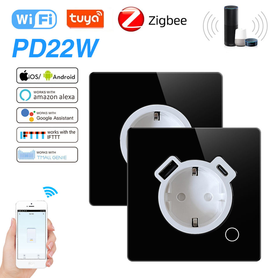 Interruptor de pared inteligente, interruptor de luz estándar de la UE del Reino Unido y toma de corriente compatible con WiFi/Zigbee/Tuya Smart Life App/Smart Home