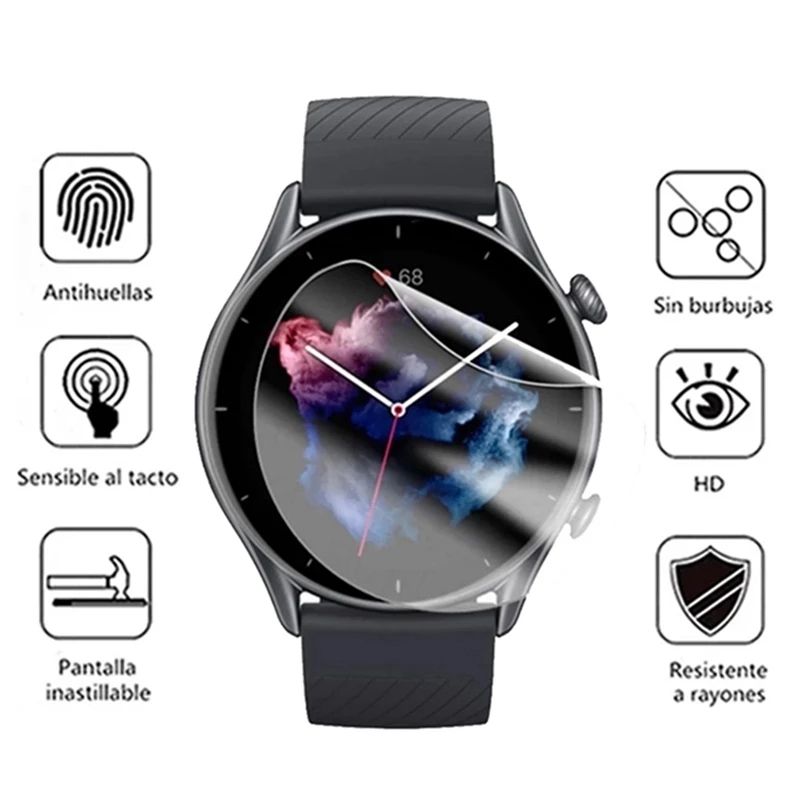 Protector de pantalla de cobertura completa para reloj inteligente Amazfit GTR 3/3 Pro, película protectora de hidrogel TPU suave y transparente