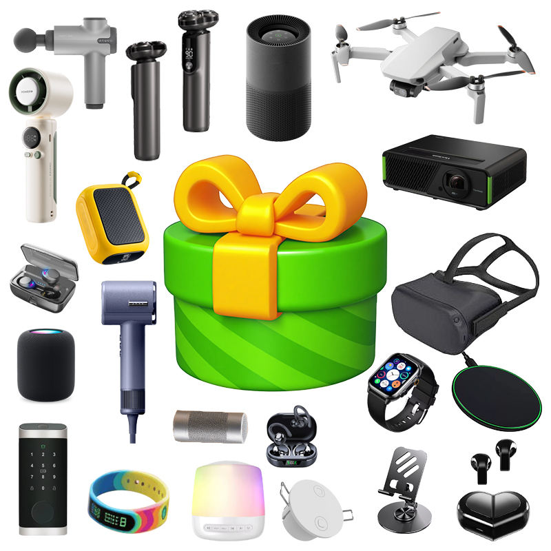 Reloj inteligente, Cámara de acción, Drone principiante, Auricular, Mini Cámara, Cámara de los niños, Pulsera inteligente, Palo selfie, Altavoz, TWS AuricularPosibles inclusiones