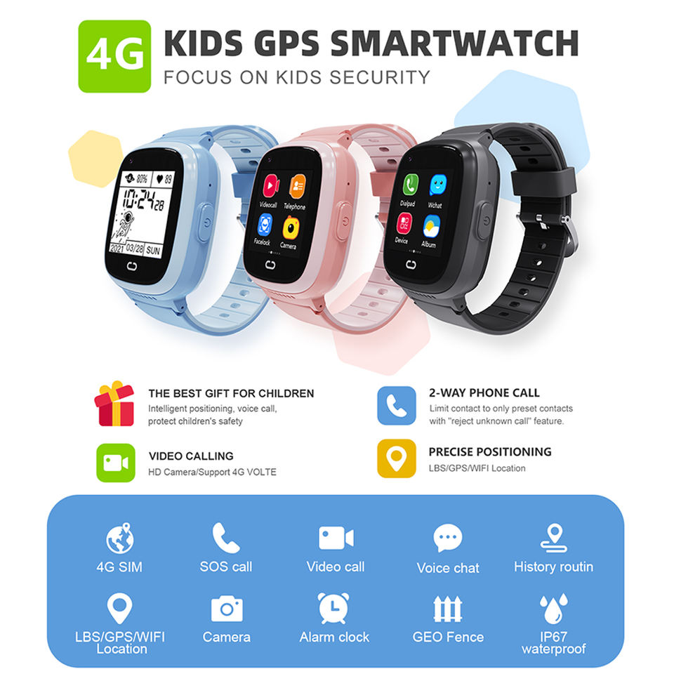 Reloj inteligente con tarjeta SIM GPS Tracker y videollamadas/reloj de teléfono celular para niños 4G/llamada SOS/chat de voz con cámara
