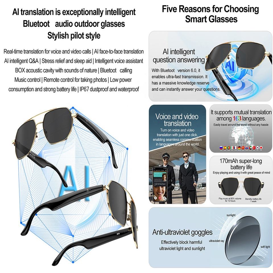 Gafas Inteligentes W100 Estilo Piloto para Exteriores con IA, Traductor de 163 Idiomas, Gafas de Sol Inteligentes W100C