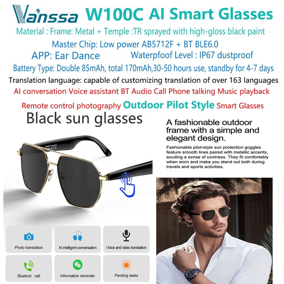 W100C AI 163 idiomas traductor gafas de sol inteligentes gafas de sol W100C