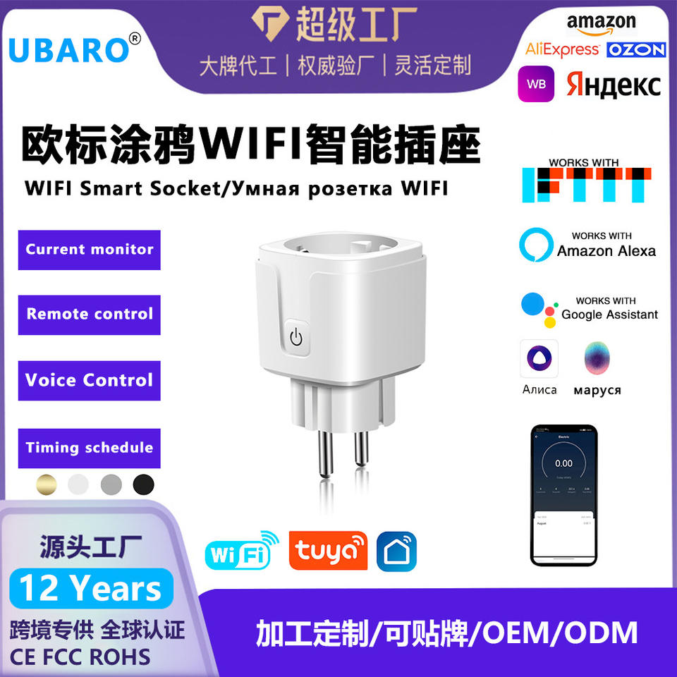 Enchufe inteligente Wifi con control por voz y función de temporizador para automatización del hogar.