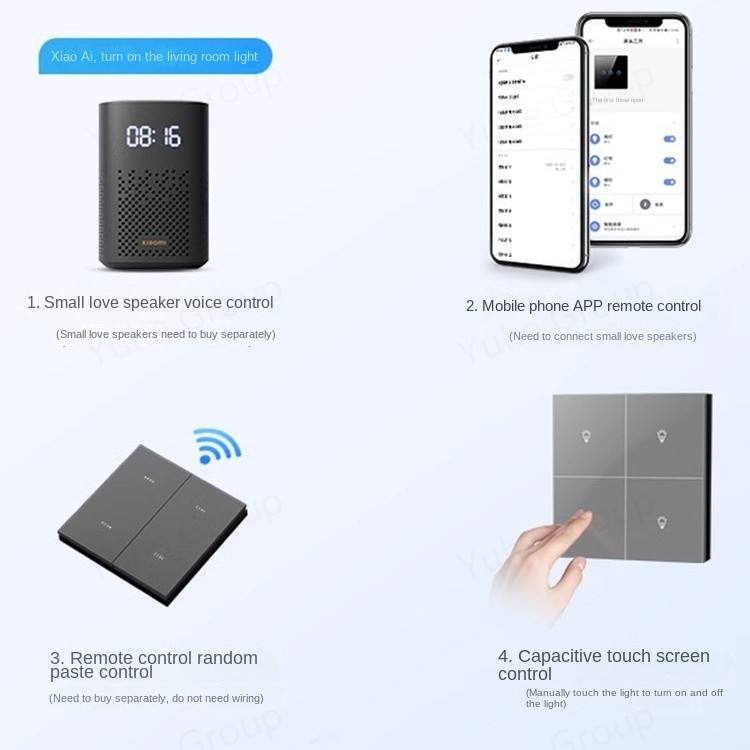 Interruptor Táctil Inalámbrico Inteligente para Control de Luces del Hogar, Encendido/Apagado, 1/2/3/4 Canales, Voltaje Máximo 240V, Corriente Máxima 10A, IP27, Fabricado en PC