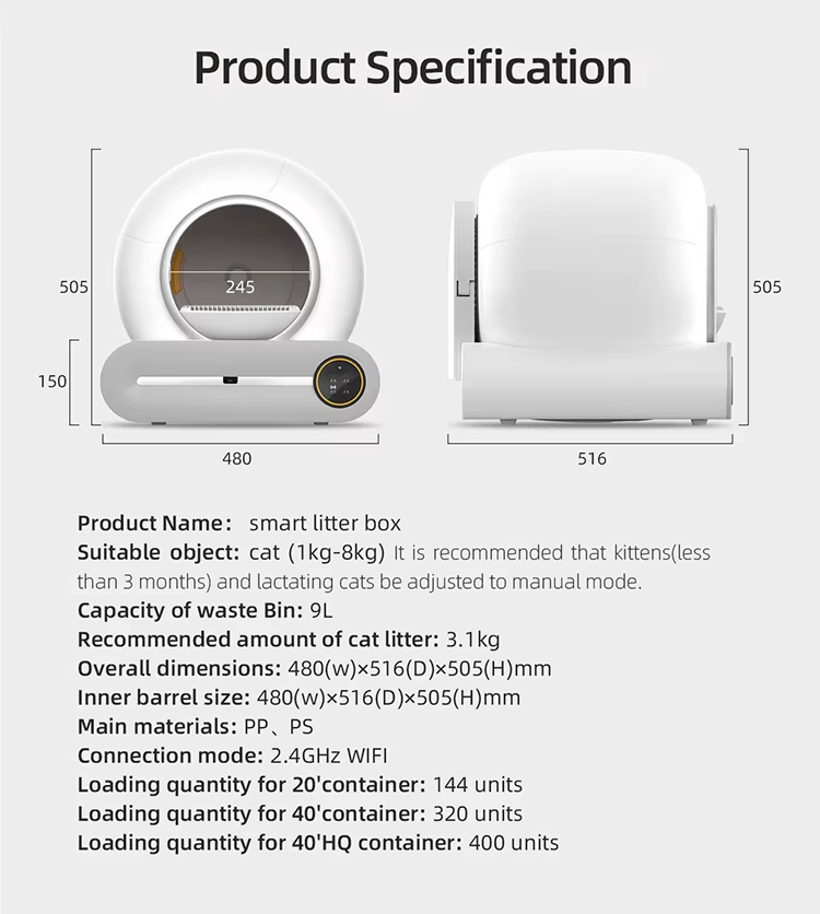 Palabra clave:Caja de arena automática para gatos con control inteligente por aplicación y autolimpieza