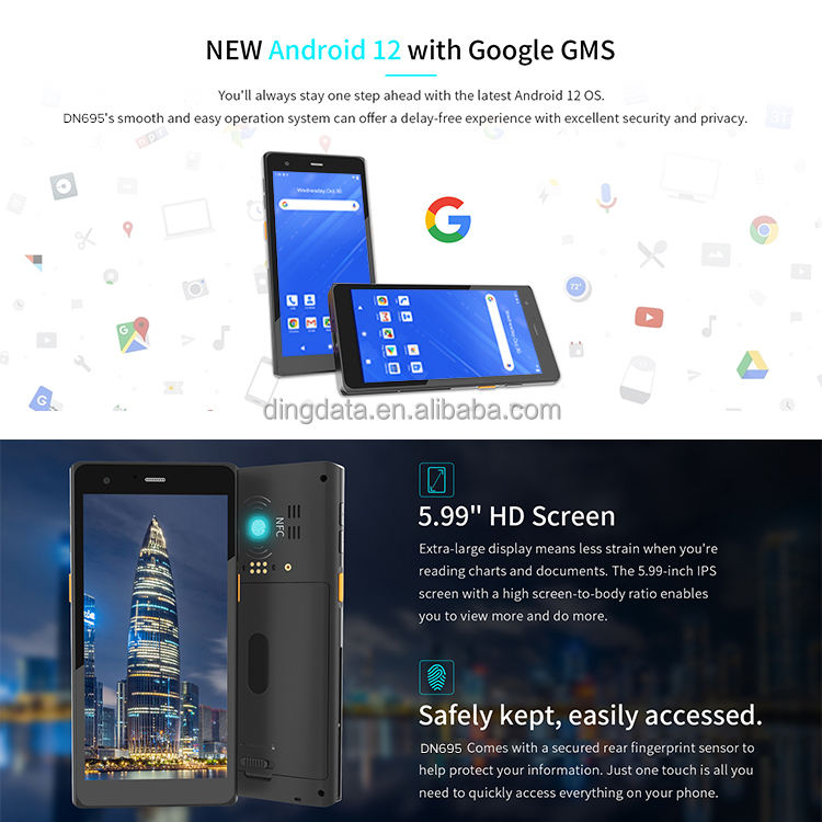 Caja al por menor + cartón de exportación Dingdata DN695-5G ordenador móvil PDA de mano resistente