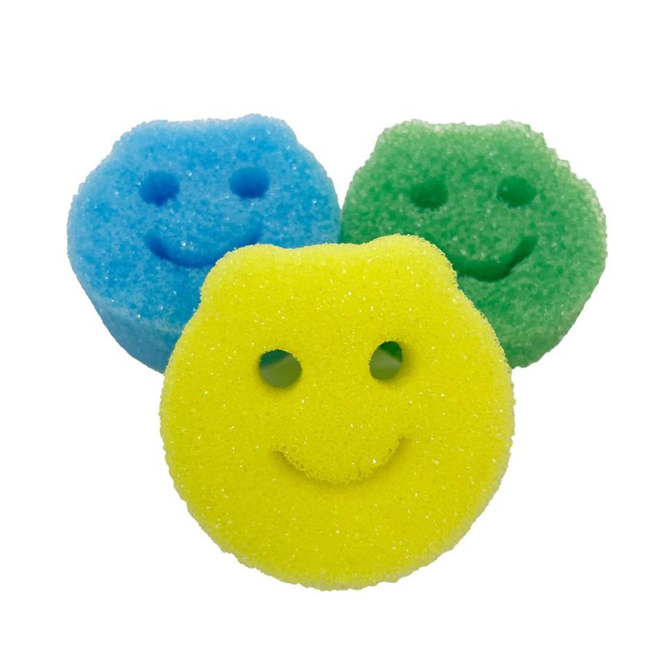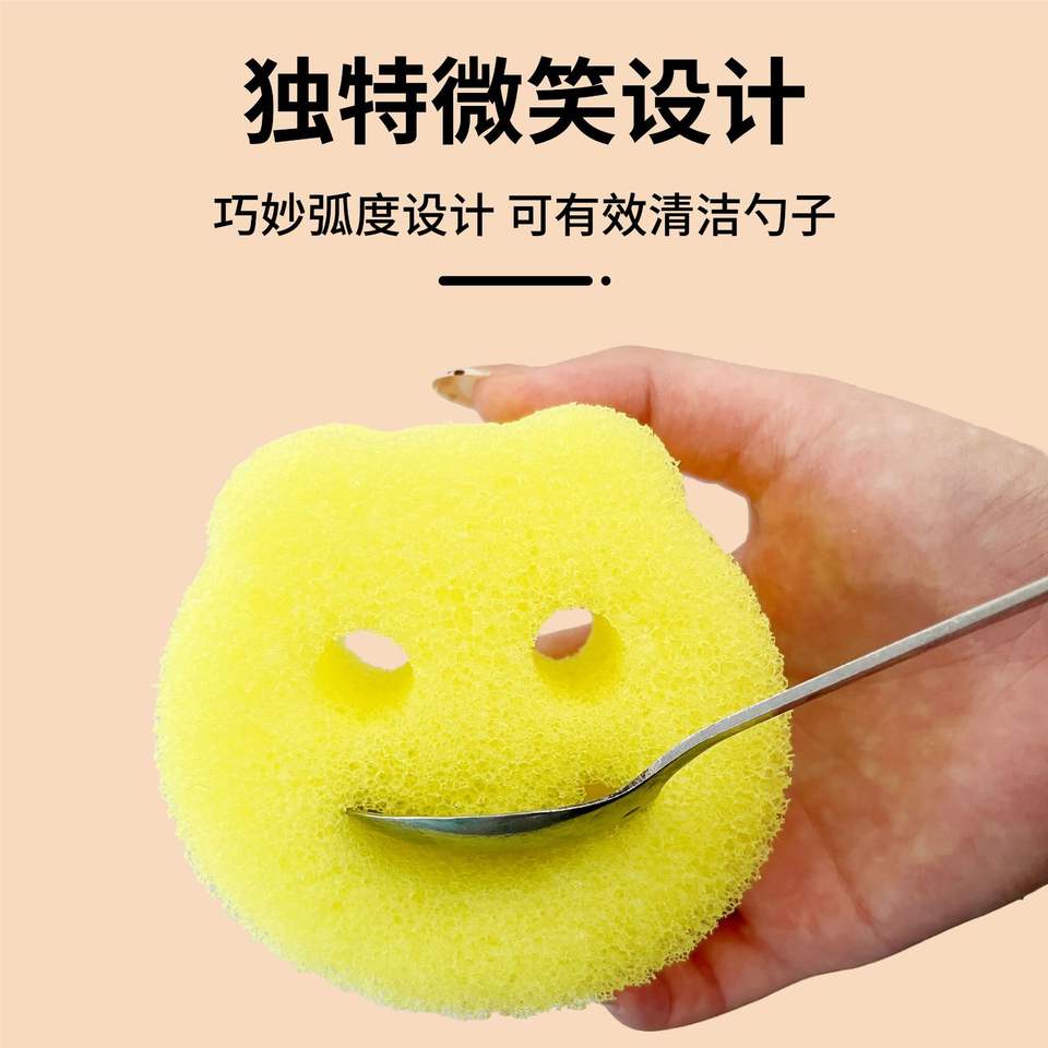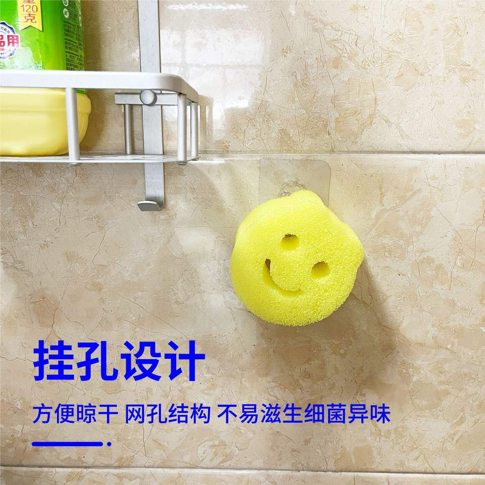 Esponja de Limpieza con Diseño de Cara Sonriente, Esponja Amarilla de Cocina con Orificio para Colgar, para un Secado Fácil e Higiénico