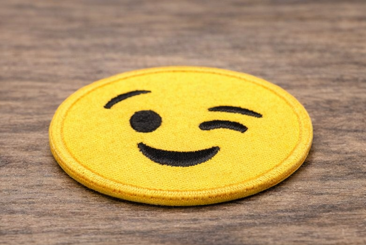Parche Bordado Termoadhesivo de Cara Sonriente Haciendo Ojos a la Luz, Lindo Aplique para Chaquetas, Bolsos y Manualidades DIY