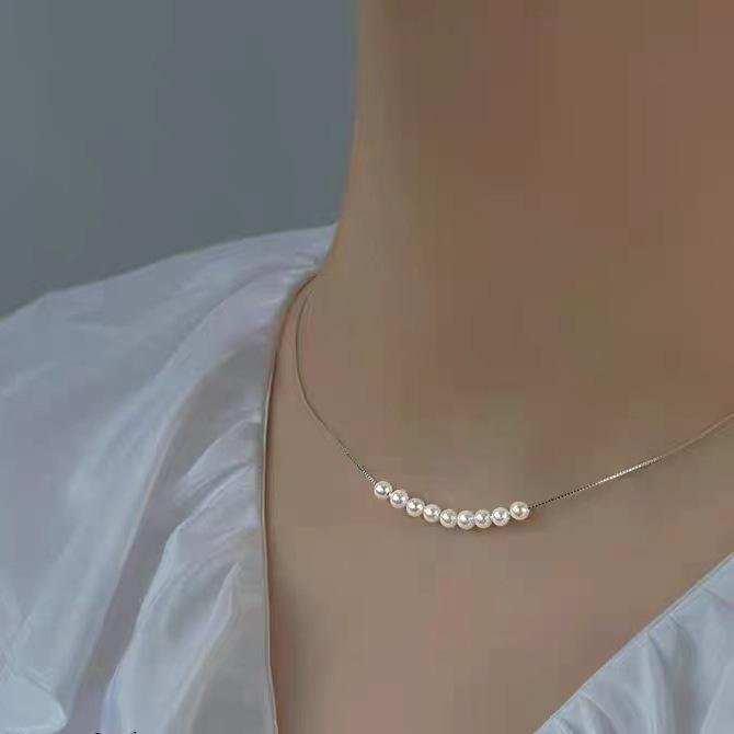 Collar de Perlas Sonrientes para Mujer, Plata S925, 5-6 mm, Pequeño, para Clavícula, Elegante, Regalo 520, Cadena para el Cuello
