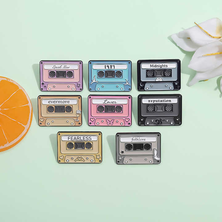 Sming Pins Taylor Midnights Estación de radio Esmalte Pins 80's Retro Radio Cassette Fearless Broches Solapa Insignia Mochila Joyería