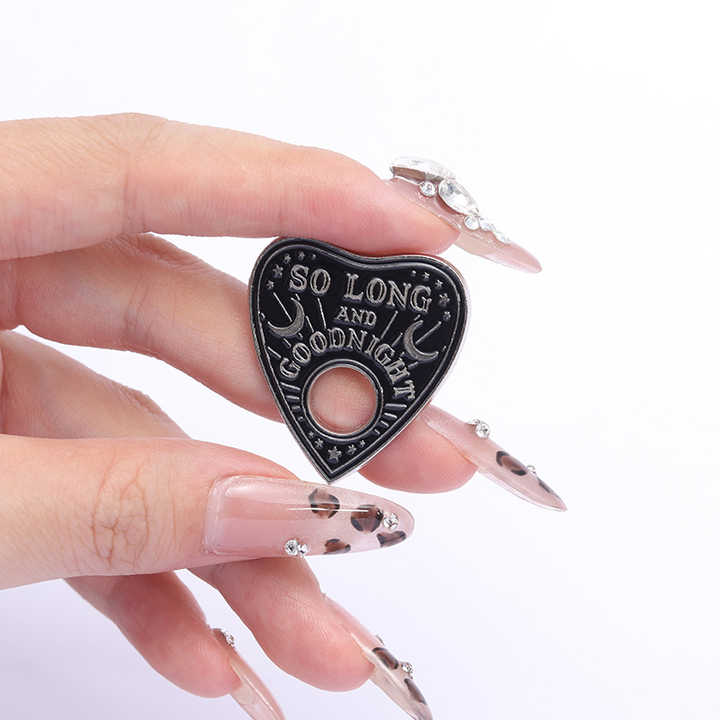 Sming Pins tan largo y buenas noches adivinación Ouija tablero esmalte Pin negro Punk película cabra Cuervo broche bolsa solapa insignia