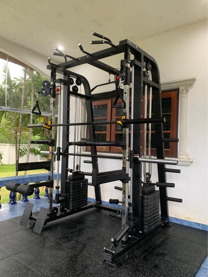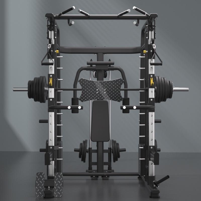 Máquina Smith integrada entrenador multifuncional, pórtico multiuso, equipo fitness para casa y gimnasio; banco comercial de press y rack para sentadillas