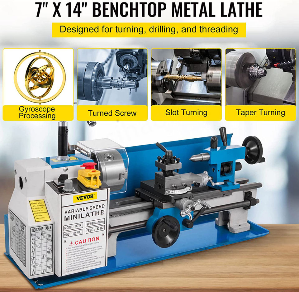 Torno de Precisión de 550W 7"x14" Mini Torno para Metalurgia