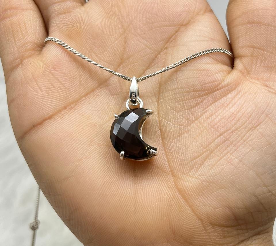Colgante de luna creciente de cuarzo ahumado Colgante de plata 925 Colgante de luna de cuarzo ahumado