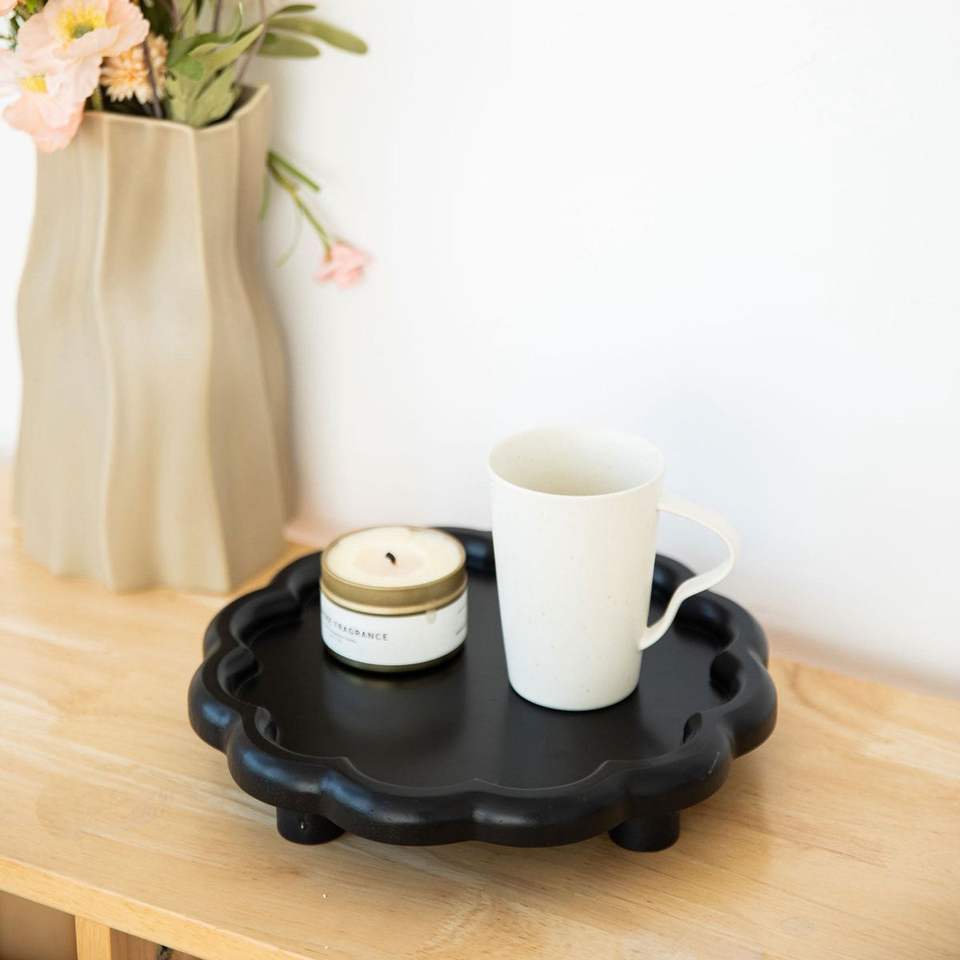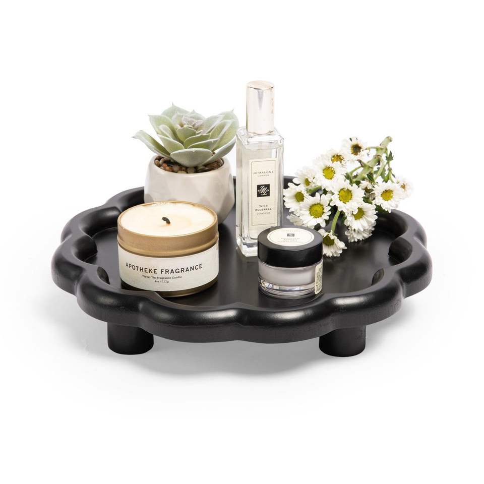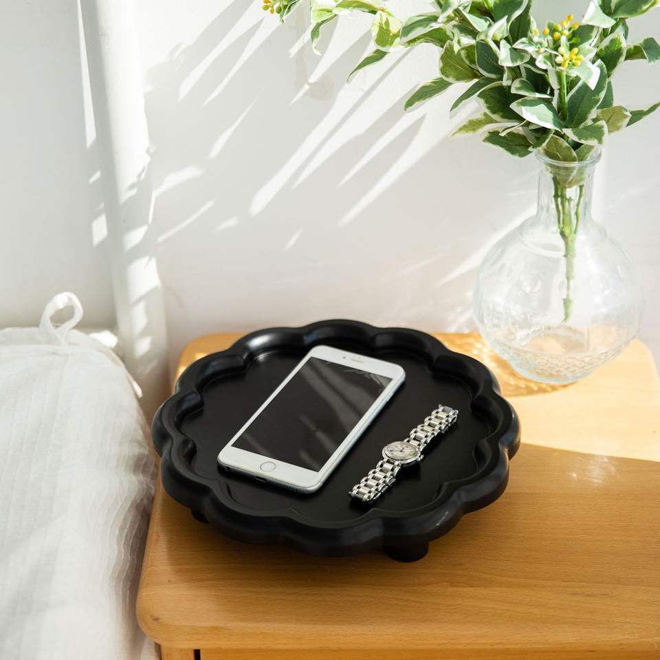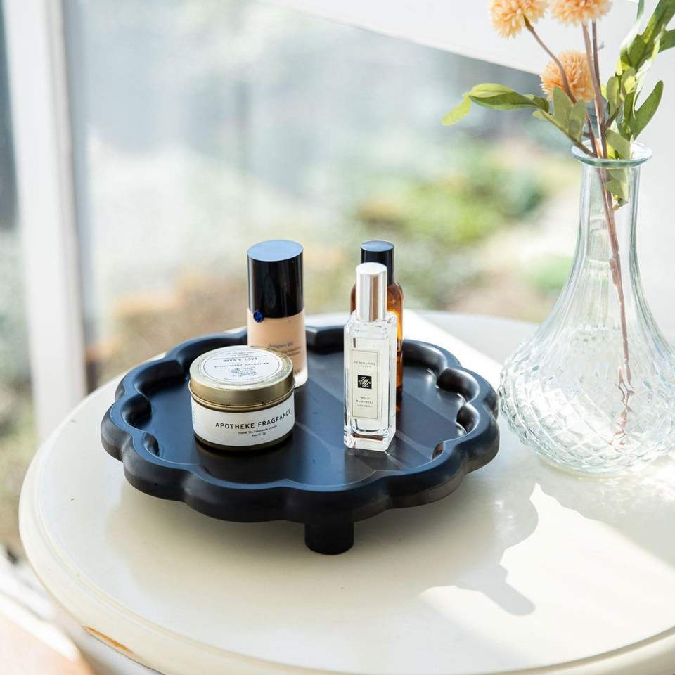 Colección de Bandejas Redondas de Madera Hechas a Mano con un Suave Patrón Floral Art Deco, Multifuncionales y Decorativas para Bodas
