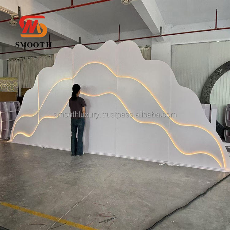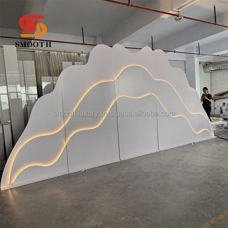 Smooth Factory Custom Popular Acrílico Led Blanco Floral Wedding Arch Door Stage Telón de fondo para grandes ventas