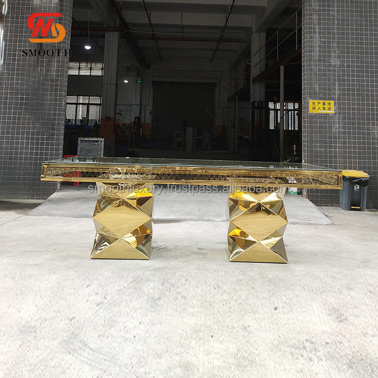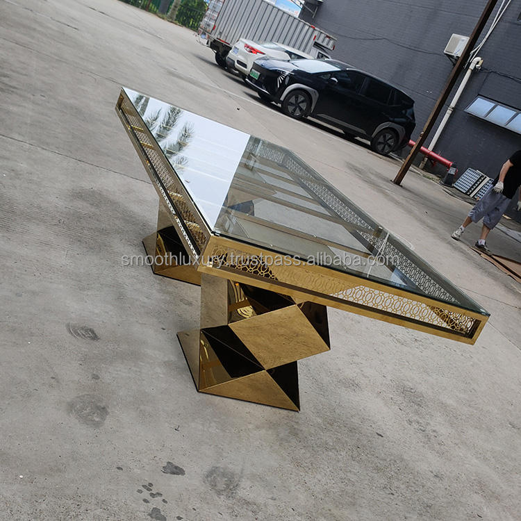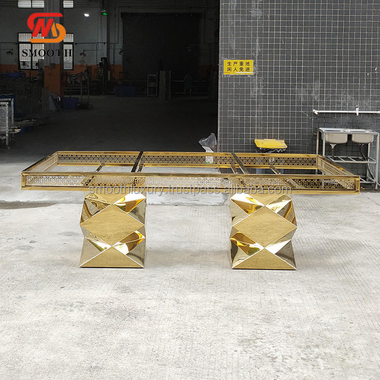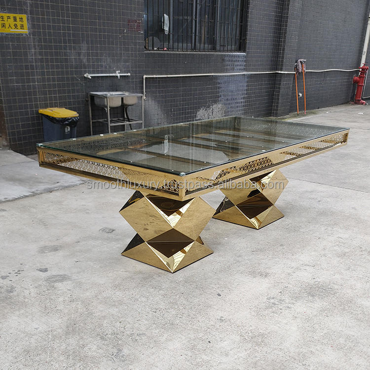 Nombre del producto:Mesa de comedor de acero inoxidable dorado