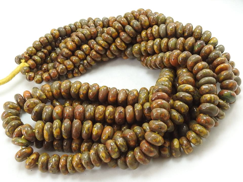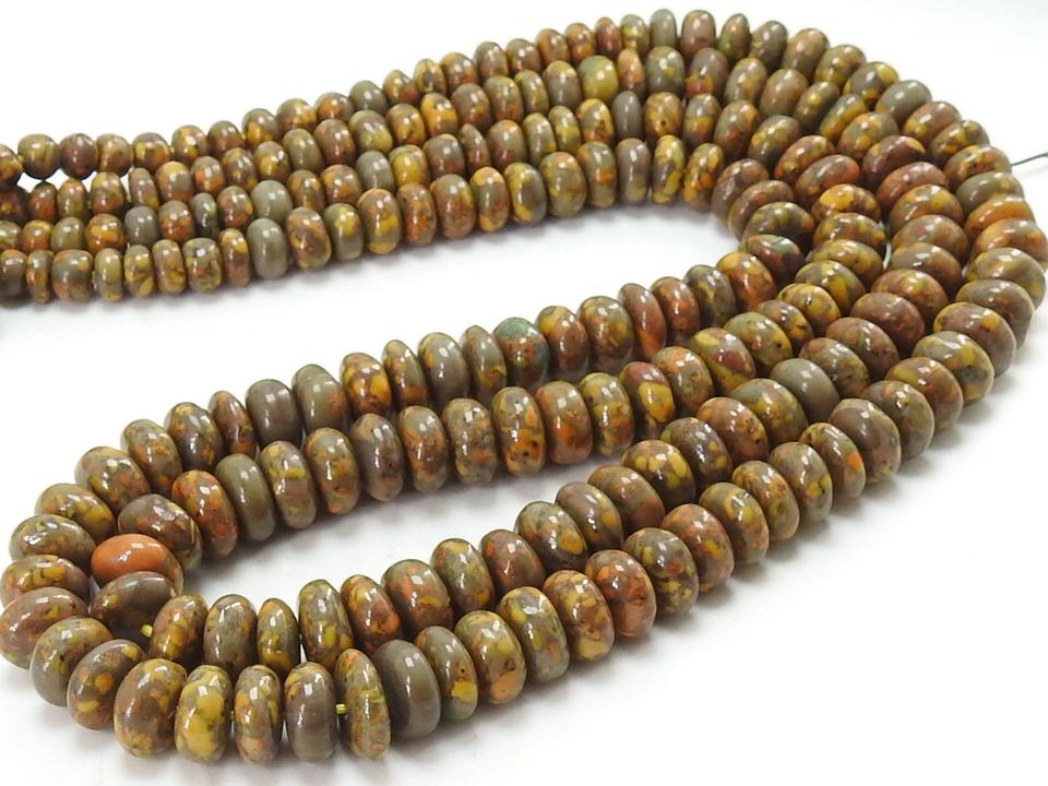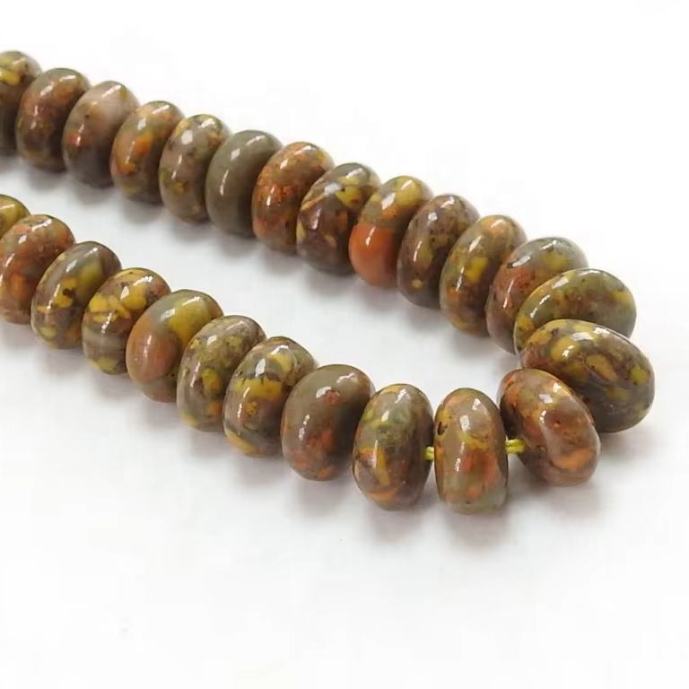 Cuentas sueltas de jaspe con imagen redonda lisa, cuentas de piedra marrón y amarilla para hacer joyas, hebra con forma de Rondelle