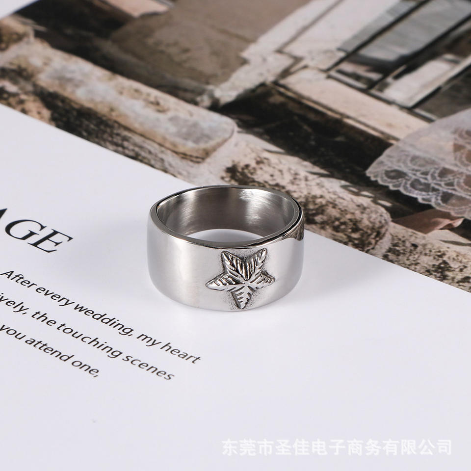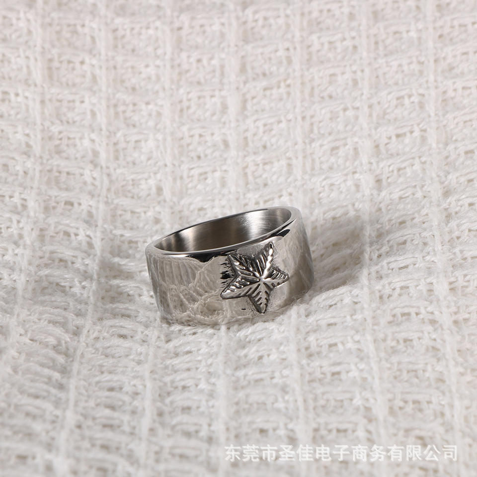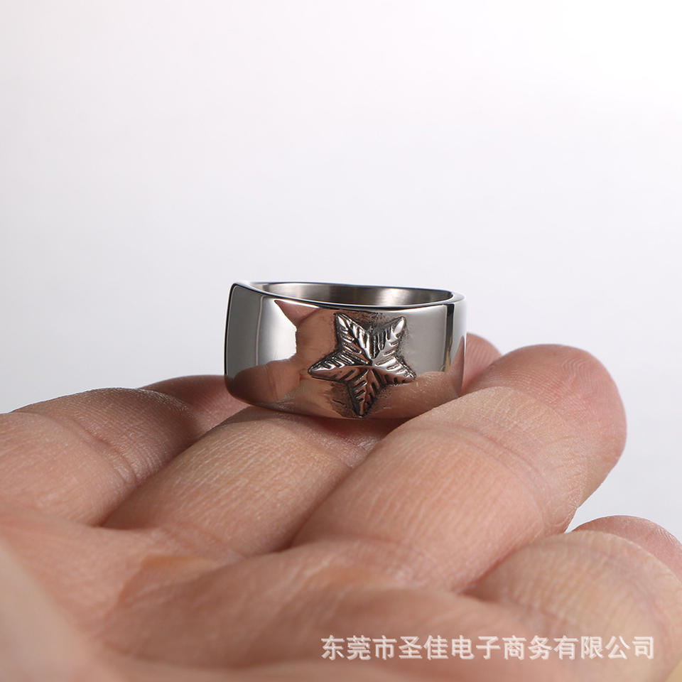 Anillo de acero de titanio con estrella de cinco puntas y placa ancha lisa, joyería de moda para hombre, regalo SA983