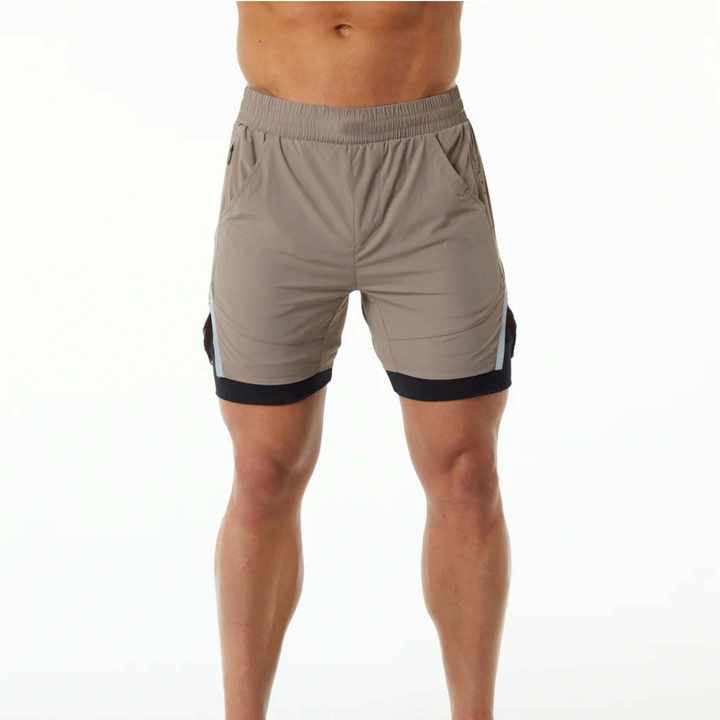 Mocha de elastano 80% de nailon 20% para hombre, pantalón corto de entrenamiento de compresión forrado con bolsillos delanteros deslizantes, más suave y suave
