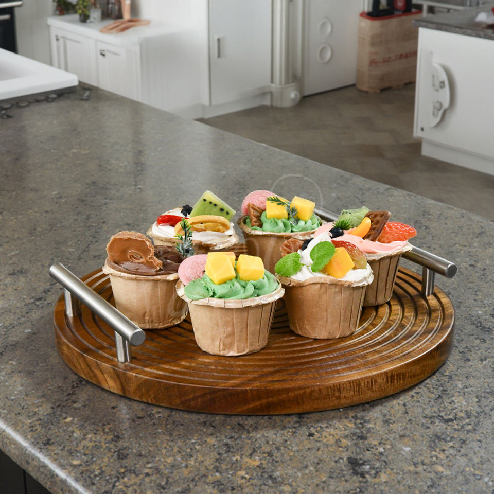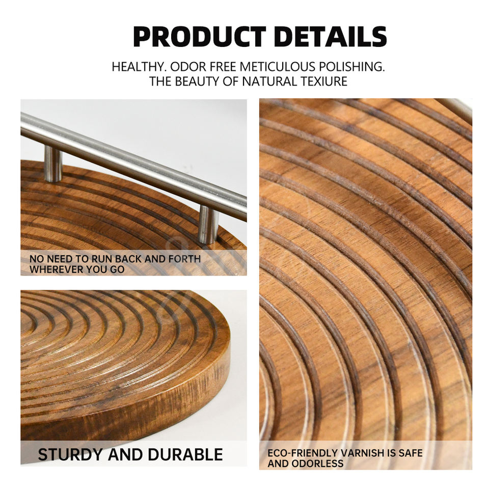 Snack cocina grande de madera absoluta de lujo redondo otomano comida marroquí latón bandejas decorativas para mesas de centro con asa