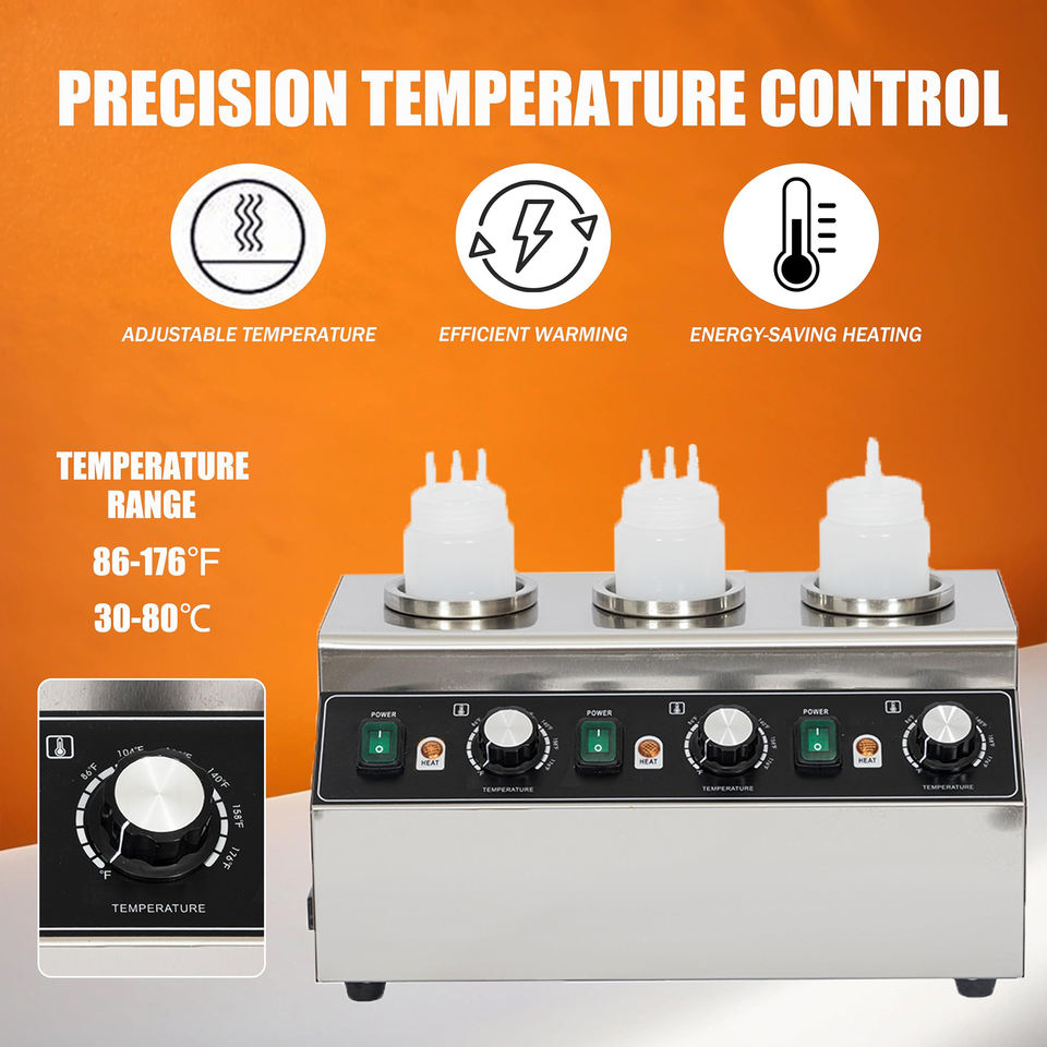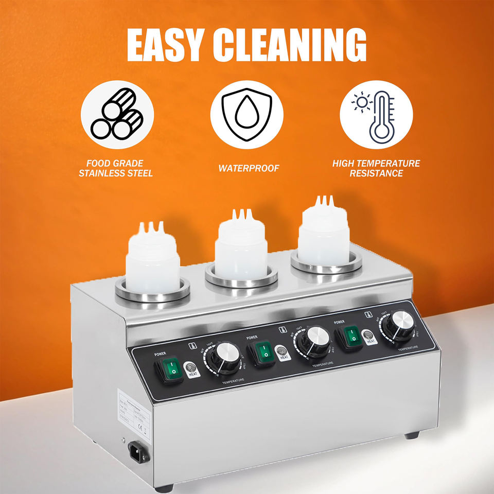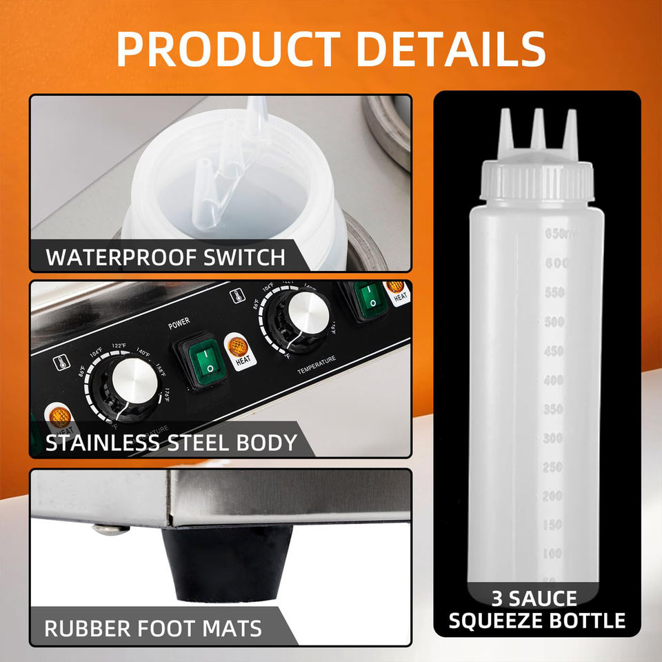 Máquina de aperitivos Queso 2 botellas Calentador de salsa eléctrico Máquina dispensadora Encimera Calentador de salsa de chocolate