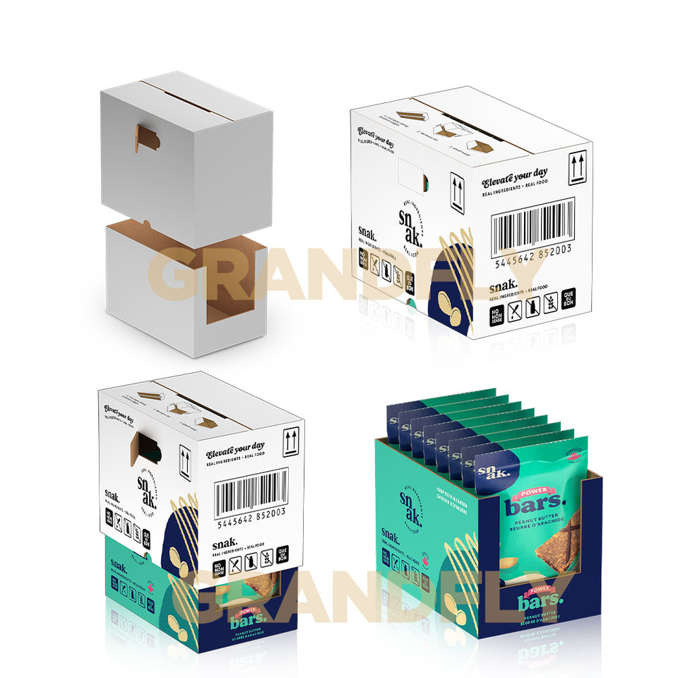Caja de Exhibición Promocional de Cartón Corrugado Perforado para Refrigerios, Reciclable, con Bandeja Desprendible PDQ, Embalaje Listo para Exhibición en Supermercados